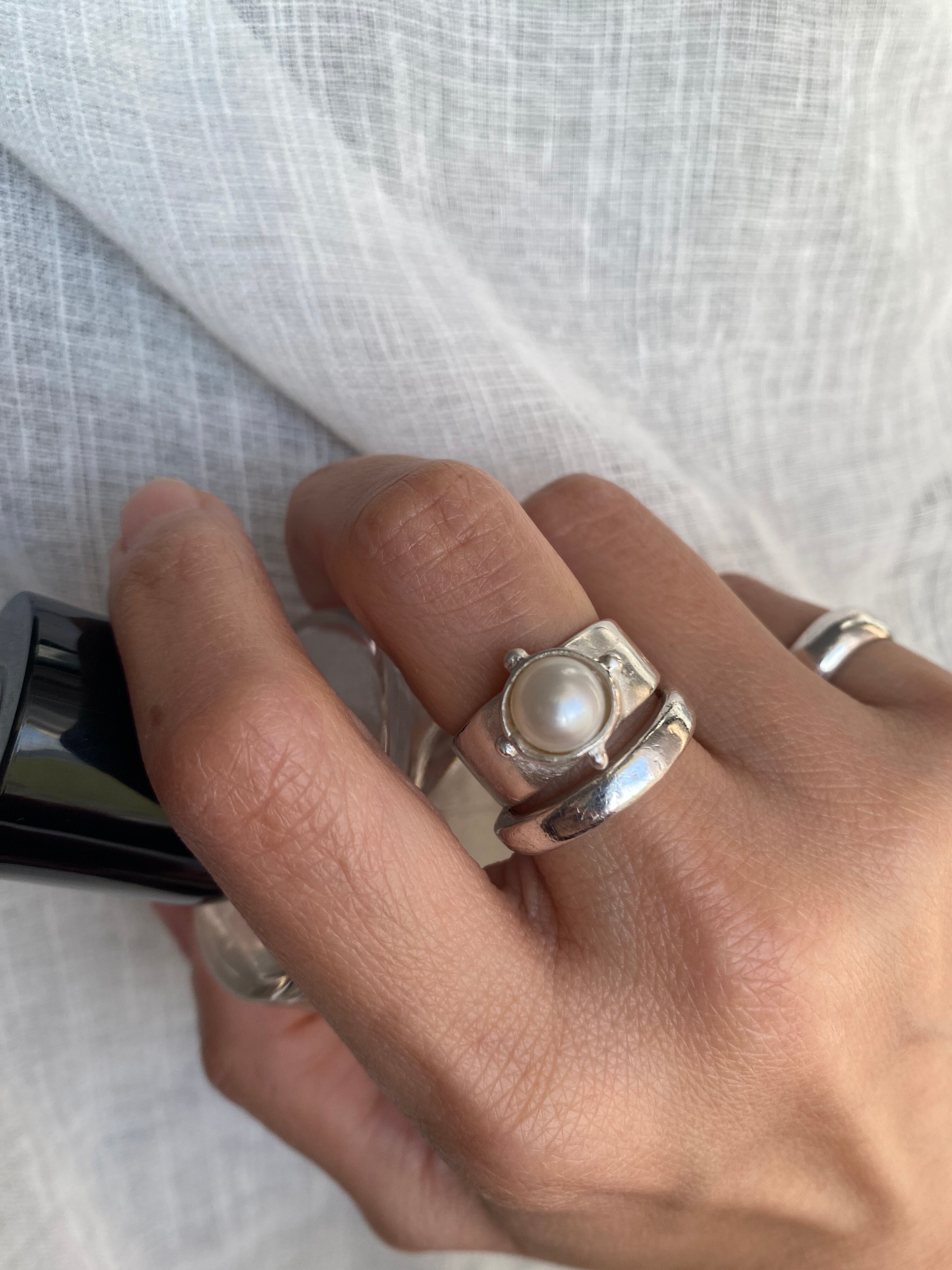 パールが特徴の太めのリング